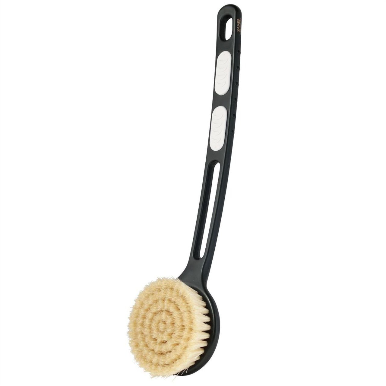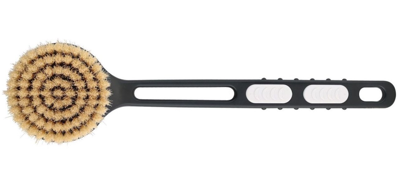 お風呂で体を洗うときにはタオルを使うのが一般的ですが、今「ボディブラシ」が注目されています。ボディブラシは弱い力で角質や皮脂をきれいに洗えるので、膝や肘、かかとなどの角質が溜まりやすい部分や、背中ニキビの予防にもおすすめ。柄の長さは全長34cmあり、手の届きにくい場所もスッキリ洗えます。