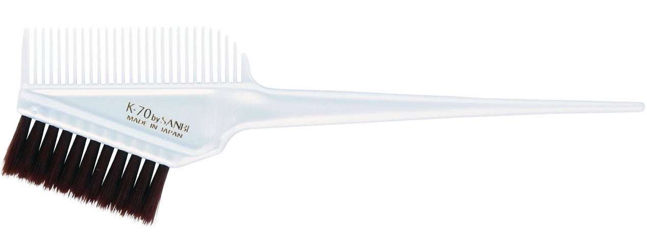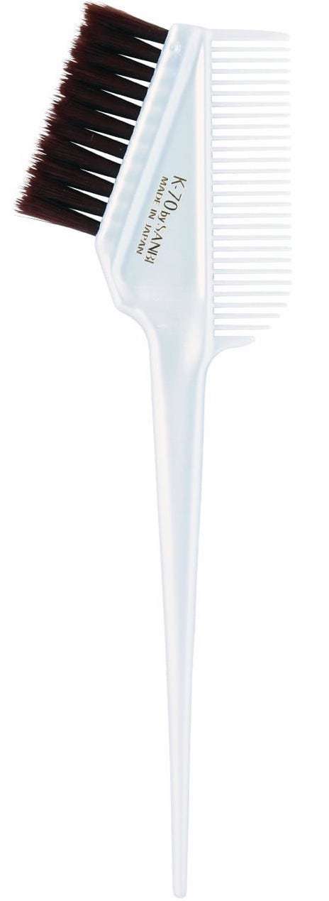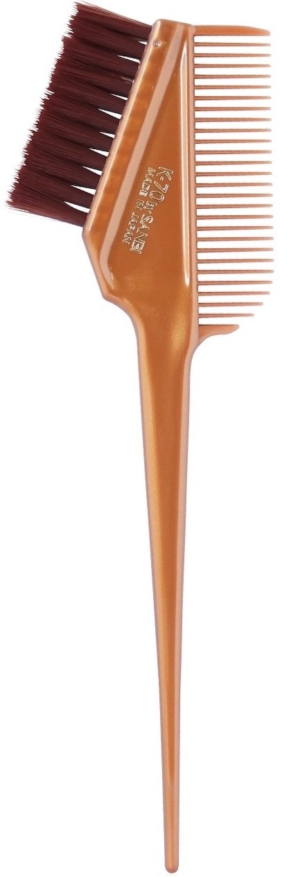K-70には『飽和ポリエステル樹脂』と呼ばれる歯ブラシなどで使われている超極細毛を採用。極細毛は毛と毛の隙間までしっかりと塗る事ができるのでムラ染めになりにくいのが特徴です。また、非常にソフトな柔らかい毛は、地肌に優しくチクチクしないので白髪染めでも活躍します。液も余分に含まないので、ヘアカラーの作業時間もスピーディーに。