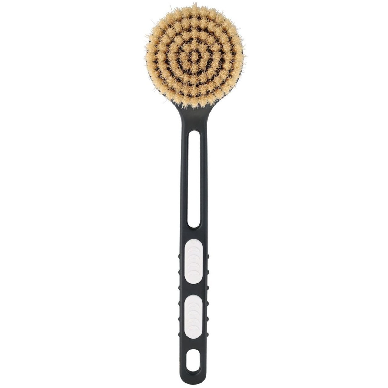 お風呂で体を洗うときにはタオルを使うのが一般的ですが、今「ボディブラシ」が注目されています。ボディブラシは弱い力で角質や皮脂をきれいに洗えるので、膝や肘、かかとなどの角質が溜まりやすい部分や、背中ニキビの予防にもおすすめ。柄の長さは全長34cmあり、手の届きにくい場所もスッキリ洗えます。